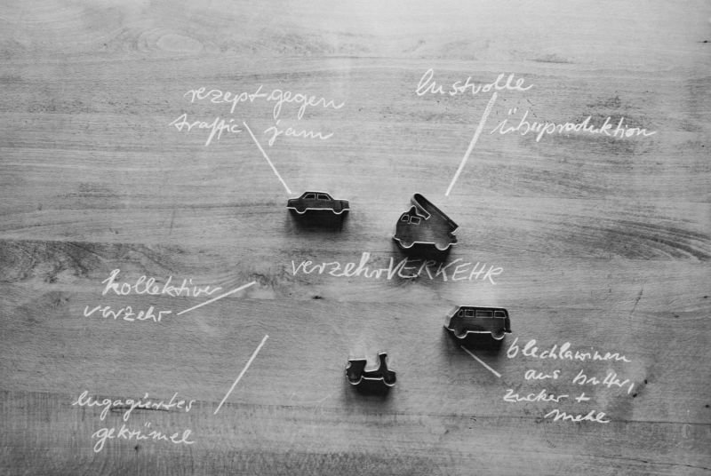 verzehrVERKEHR widmet sich der Überproduktion – konkret dem Zuviel an Autos. Einen Nachmittag stellen wir nonstop und mit Hochdruck Autos, Autos, Autos her. Dabei werden jedoch keine Blechlawinen vom Band gehen, sondern Backwerk. Im KFZ-Format verlässt Keks für Keks die mobile Kücheneinheit und füllt die vorbereiteten Stellflächen auf der Tankstellenbrache.