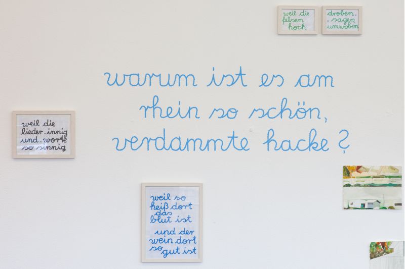Warum ist es am Rhein so schön?, Schrift aus Klebeetiketten