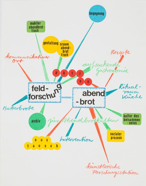 Seit geraumer Zeit liegt ein Fokus unserer Arbeit auf den Ausprägungen von Küchenkulturen. Mit einem privat-kulinarischen Teilbereich des Alltags beschäftigt sich das Projekt FELDFORSCHUNG ABENDBROT, indem es ein spezifisches Phänomen im deutschsprachigen Raum in den Blick nimmt: das kalte ABENDBROT. Der brotbasierten Mahlzeit – und den damit verbundenen Erinnerungen, familiären und regionalen Prägungen, individuellen Rituale und Vorlieben, Belägen und Gestaltungsfragen – spüren wir in diesem Projekt nach. Besuche an fremden Abendbrottischen, Aktionen im Stadtraum, aufsuchende Gastronomie oder Abendbrotkongresse sind die Formate, mit denen das Feld des Abendbrottischs untersucht wird.