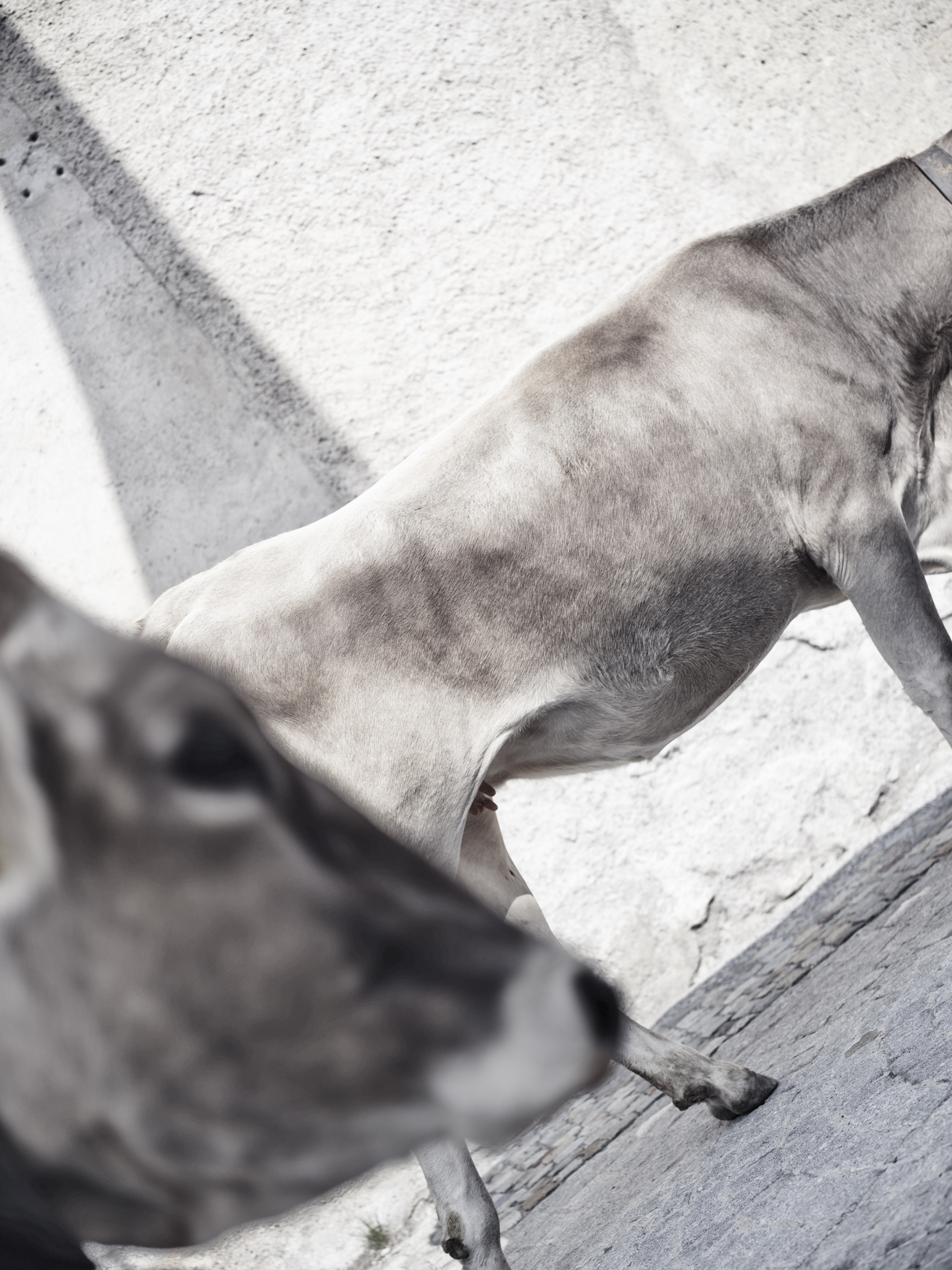 Das Val Mustair ist von Fläche und Bevölkerungszahl ein überschaubarer Landstrich. Trotzdem wurde mir vor Ort schnell klar, wie komplex das Gefüge aus Natur und Kultur, aus Gegenwart und Vergangenheit, aus Berg- und Tallandschaft, aus drinnen und draußen ist. Eine erste fotografische Annäherung war für mich deshalb nur mit einem offenen Blick möglich, der collagehaft bleibt, mit Unschärfen arbeitet und unsystematisch zusammenführt. Dieser forschende und bewusst stochernde Zugang scheint mir diesem Stück Schweizer Welt – zumindest für einen Anfang – angemessen. So konnte ich erste Bildreihen anlegen, die weiterzuverfolgen sind und Motivserien finden, die Verknüpfungen zu meinem bisherigen Bilderkosmos aufweisen. Das Entdeckte und Festgehaltene ruft nach Fortsetzung, Wiederholung, Konzentration.