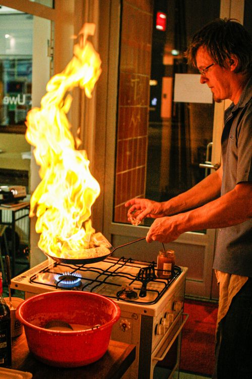 Jörg Wagner bringt neben seinem reiserprobten Herd und einem Speisenplan im Vorfeld recherchierte und mit dem Gastgeber abgesprochene Gesprächsanlässe mit. Arbeitsessen haben u. a. stattgefunden in: München, Köln, Darmstadt, Hamburg, Frankfurt, Dresden, Karlsruhe, Berlin und Düsseldorf.
